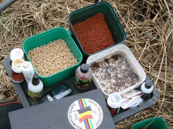 Технология приготовления. Все составляющие нужно тщательно измельчить, чем меньше мельче будут размолоты компоненты, тем лучше. Затем в массу нужно постепенно добавлять воду и грунт, доводя ее до однородной консистенции. В самом конце в смесь вводят опарышей, циклопов и ароматизаторы. В качестве ароматической добавки лучше всего подходят мед и анис.