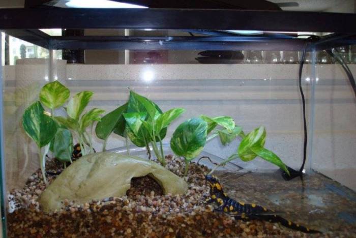 Для террариума обязательно должно быть создано дополнительное освещение в виде ламп дневного света — световой день для саламандр должен состоять из 12 часов. Лампы размещаются на определенном расстоянии от жилища животного.