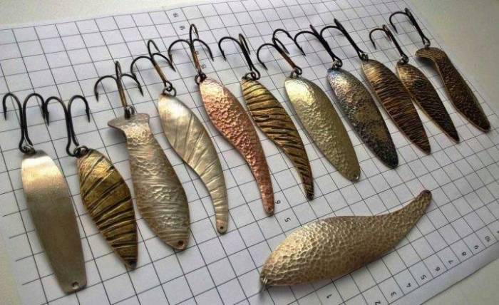 Самодельная блесна должна быть блестящей, достаточно тяжелой для обеспечения сложной траектории движения (блеснения), имитировать форму рыбки-добычи. Поэтому лучшим материалом для ее изготовления будут водостойкие, полируемые металлы (медь, латунь, нержавейка, олово, свинец). Колебалки изготавливают из металлических изогнутых блестящих или окрашенных пластинок с закрепленным на них (подвижно или неподвижно) крючком.