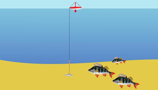 - Опустить живца до дна и выставить глубину таким образом, чтобы малёк плавал в 15–30 см от грунта.