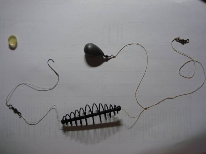 - расстояние между поводками и оснасткой должно составлять 20−30 см;