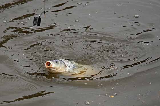 Карп довольно долго подходит к закормленному месту, поэтому часто перезабрасывать не нужно. Снасть следует вынимать каждые 30 мин, чтобы проверить целостность наживки и заново набить контейнер.