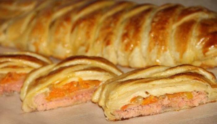 Пирог «Рыбка» из слоеного теста с рыбно-овощной начинкой