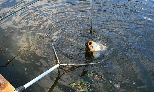 Возле берега лучше постараться приподнять улов, чтобы рыба глотнула воздуха – активность ее снизится. На последнем этапе рациональнее будет подстраховаться сачком.