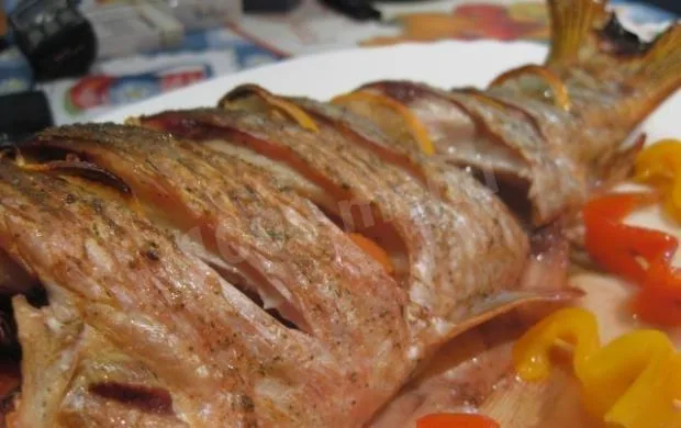 2. Подготовка сазана: Очищаем сазана, удаляем внутренности, отрезаем голову. Мыем рыбу, затем тщательно натираем солью и перцем снаружи и внутри. Затем начиняем рыбу, наполняя ее луком и сладким перцем.