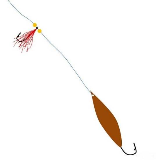 - Финская оснастка (муха на поводке 5-7 сантиметров длинной под блесной или балансиром вместо тройника).
