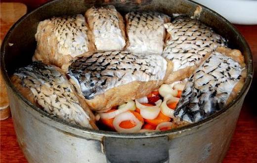 Перед приготовлением карпа очищают, удаляют внутренности и жабры, промывают. Приступают к процессу: