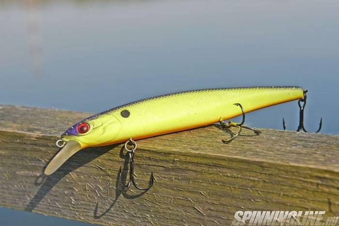 Длина этого топового суспендера на щуку – 115 мм, вес 14 граммов, заглубление до 1.5 метров. Многие считают его самым лучшим уловистым воблером на щуку и окуня. Итошайнер прост и понятен для новичка ввиду универсальности – он работает на любой проводке. Конечно, как именно анимировать в конкретных условиях – вопрос эксперимента. В этом и особенность этого минноу – он заменяет собой несколько приманок. Как и вантен, по сути является медленно всплывающим, но с металлической скруткой – суспендер.