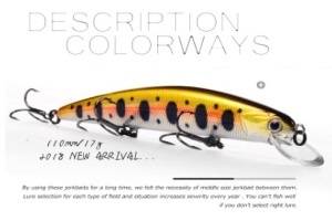 Сами цвета тоже представлены очень обширно, чего только у Jackall не увидишь! Помимо традиционного набора естественных расцветок я бы отметил большой выбор «тигровых», т.е. ярких цветов с тёмной спиной и полосками по бокам с матовым покрытием. На моей памяти такого разнообразия нет больше ни у кого.