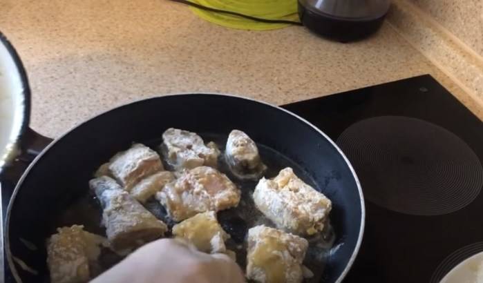 Карп жареный на сковороде кусочками в муке (получается очень вкусно)