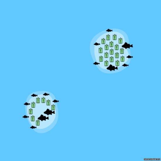 Рис. 4. Места примерных стоянок окуня возле травяных островов.