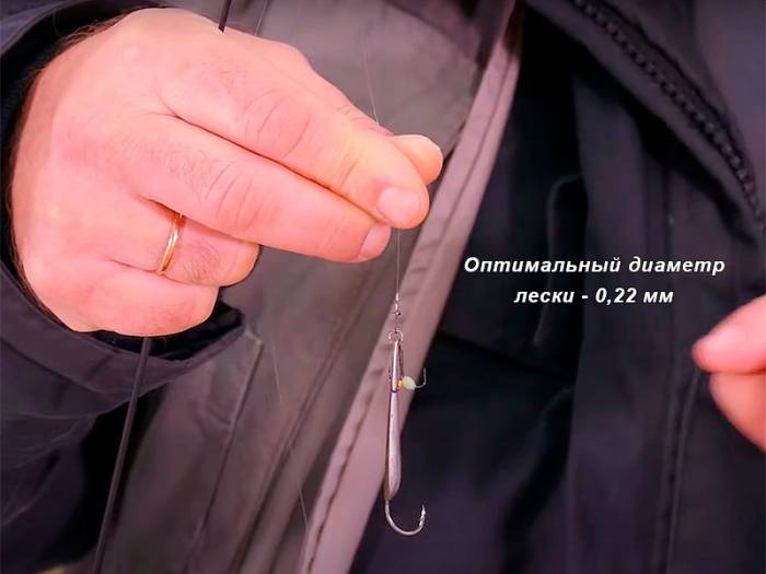 Если мы ловим средних по размеру рыб, например окуней до 500 — 600 г., то используем леску, диаметром 0,22 мм;