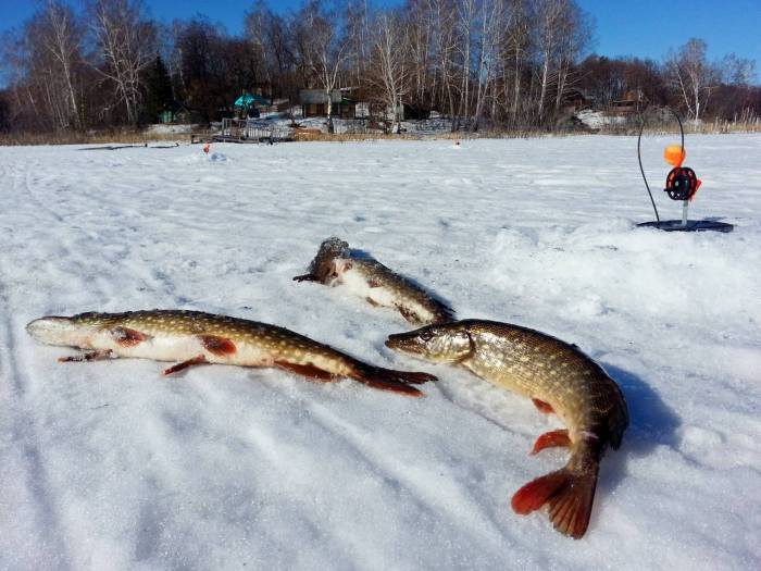 К концу зимы лед становится пористым, появляются проталины, вода выступает из лунок. В это время года клев возобновляется с новыми силами: акватория насыщается кислородом, а щука нагуливает вес перед нерестом. В феврале нередки поимки трофейных экземпляров, при этом рыба отзывается в крайне необычных местах.